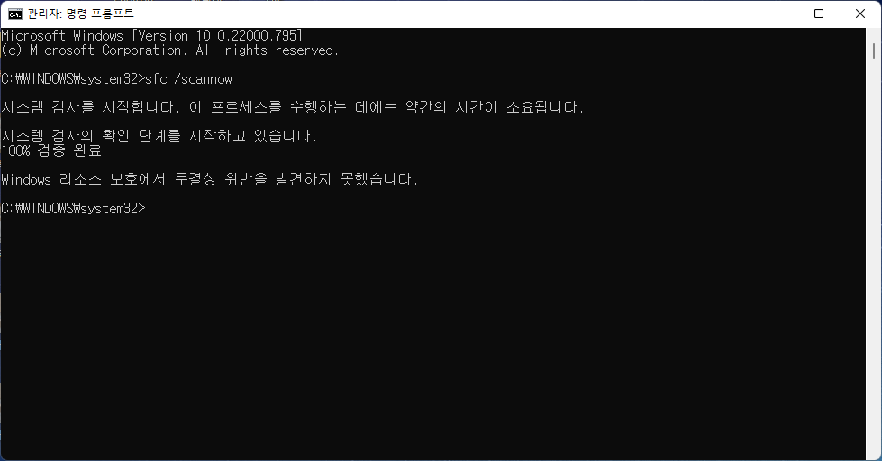 이고 이명령어는 시스템 검사기로 오류여부를 확인하는 명령어이다